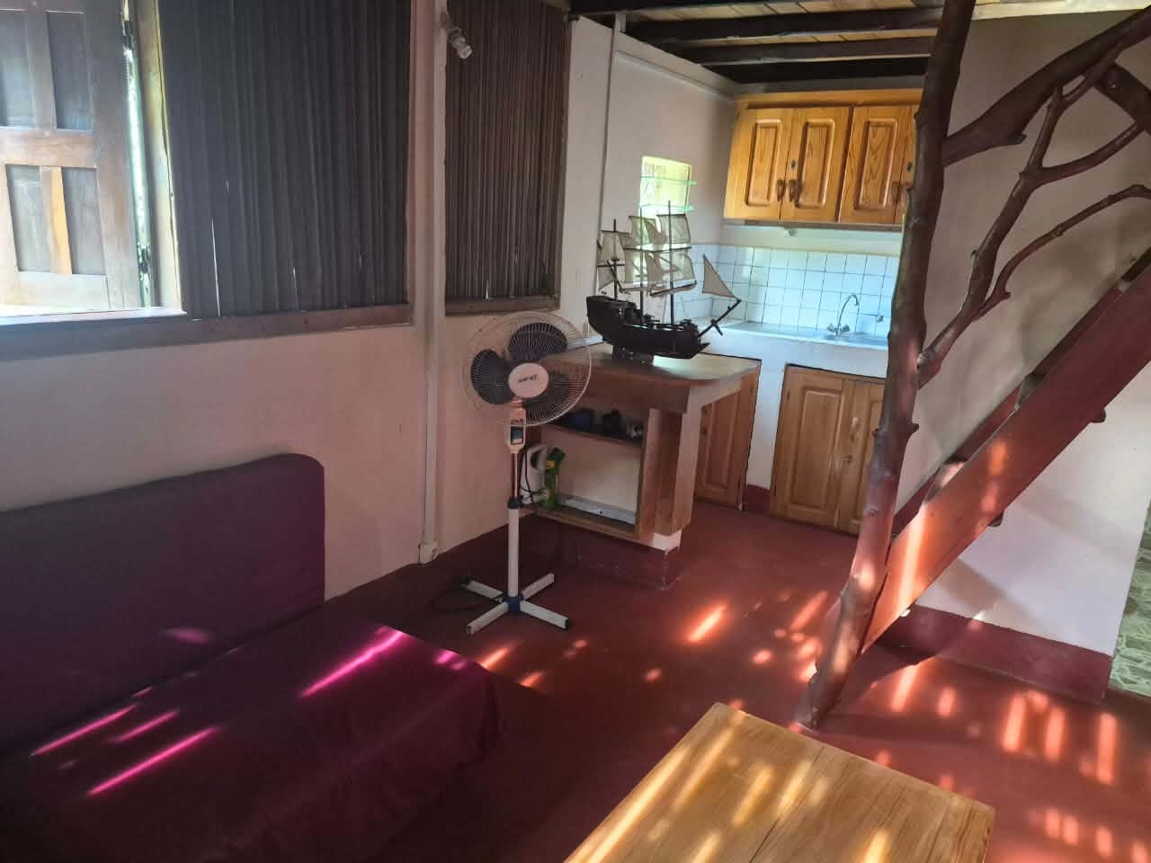 Le studio est équipé d’eau chaude, avec une toiture en ravinala.